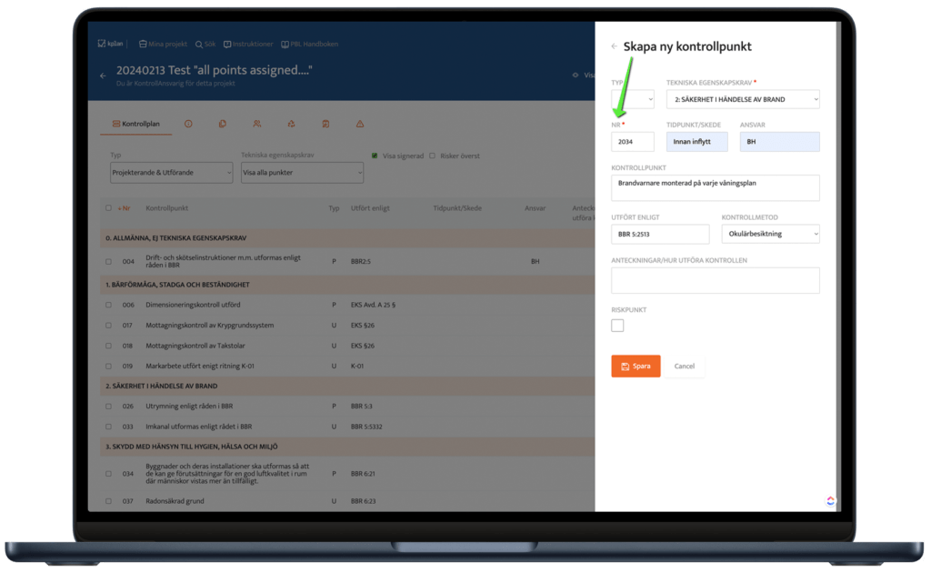 Numera skapas automatiskt ett unikt nummer när du lägger till en ny kontrollpunkt manuellt.